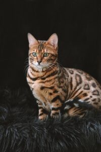 Exotisch, athletisch und unverkennbar wild – die Bengalkatze entstand durch die Kreuzung einer asiatischen Leopardenkatze mit verschiedenen Hauskatzen. Trotz ihres relativ moderaten Gewichts von vier bis fünf Kilogramm wirkt sie durch ihren langen Körper von etwa 110 Zentimetern und die langen Hinterbeine sehr groß. Das auffällige Fell zeigt kontrastreiche Rosetten oder marmorierte Muster, die an einen Mini‑Leoparden erinnern. Bengals verfügen über eine schier endlose Energie, springen hoch und lieben es, im Wasser zu planschen. Sie sind neugierig, schlau und brauchen sowohl geistige als auch körperliche Auslastung, sonst werden sie schnell erfinderisch.